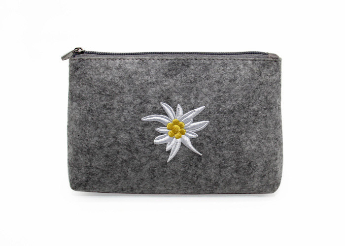 Hot sale dames voelde make-up cosmetische zak met borduurwerk fabriek op maat voelde cosmetische zak